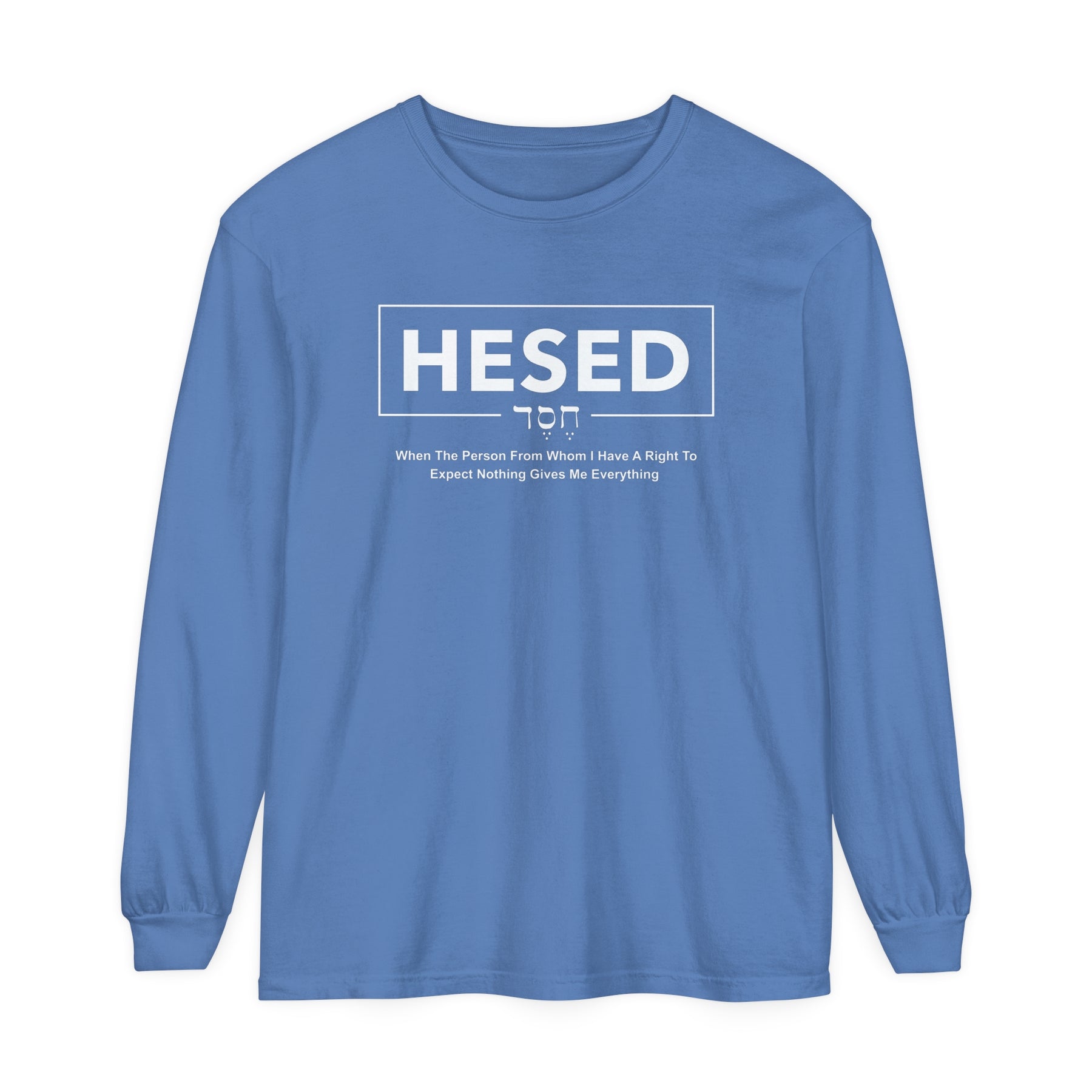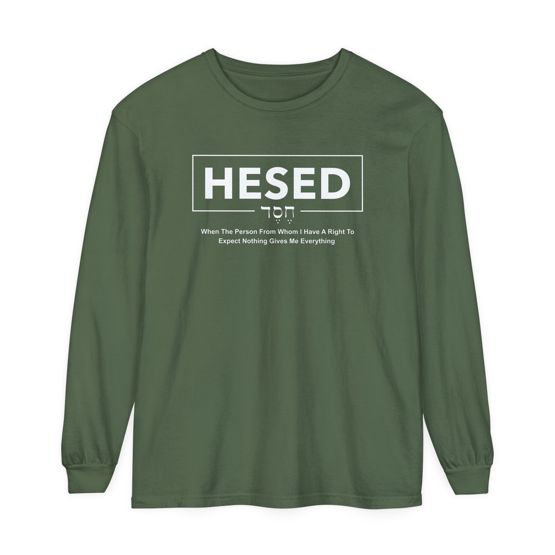 Powerful Statement: The word HESED stands prominently, accompanied by the definition that encapsulates its profound meaning: " When the person from whom I have a right to expect nothing gives me everything". This design serves as a constant reminder of the unmerited grace and boundless love bestowed upon us by God.